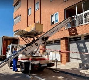 La distancia de separación de la grúa elevadora con la fachada no podrá ser, en ningún caso, superior a 10 metros. Es importante, por otro lado, que el espacio de delante de la fachada esté completamente libre de obstáculos. No obstante, desde Mudanzas Calleja siempre intentamos encontrar la mejor solución para nuestros clientes, sea cual sea la situación o accesibilidad del inmueble.